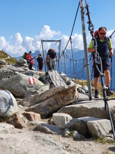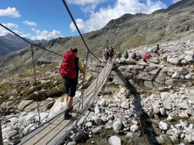 Nach einigen Fotos am Instagram-Hotspot, auf der Hängebrücke, Nähe der Olperer Hütte, wo sich sogar ein Brautpaar ablichten ließ, erreichte man schließlich um 13.00 Uhr die Sonnenterrasse vom Zamsereck-Wirt, am Ufer des Sees. Bei einer genüsslichen Brotzeit ließ man die wunderbaren Eindrücke des Bergwochenendes Revue passieren. Nebenbei schmiedeten die Bergfreunde des TSV Velden, zusammen mit den Organisatoren Johanna Thalhammer und Sepp Lurz, bereits Pläne für das nächste Jahr.