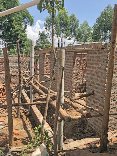 Der Bauprozess dauerte fünf Wochen. 40 Freiwillige aus Europa haben vor Ort geholfen. Ca. 20 lokale Arbeiter/Handwerker wurden eingesetzt. Alle Materialien wie Ziegelsteine, Holz, etc wurden lokal eingekauft.