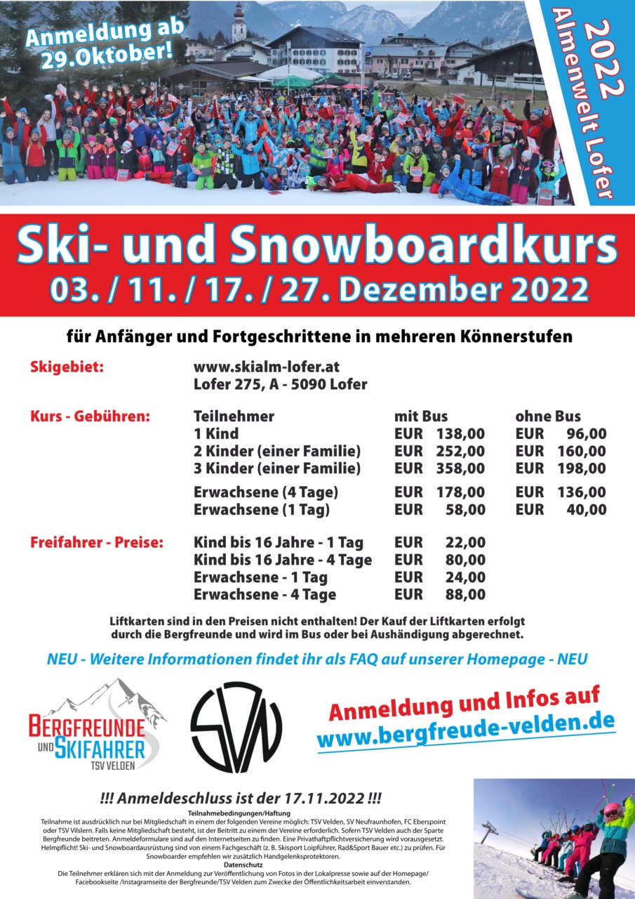 Ski- u. Snowboardkurs / Freifahrer 2022