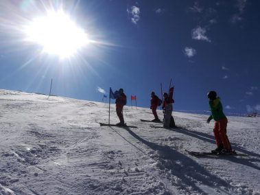 Nach der Mittagspause ging es bei strahlenden Sonnenschein weiter mit einem neuen Lauf. Abwechselnd durfte jeder mal die verschiedenen Aufgaben beim Stecken übernehmen und am Ende stand ein flüssiger Riesenslalom auf der Piste. Mit engagierten Fahrten, feinster Technik und einem Lächeln im Gesicht wurde der Lauf bis zum späten Nachmittag genutzt und bis aufs letzte ausgereizt.