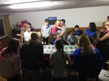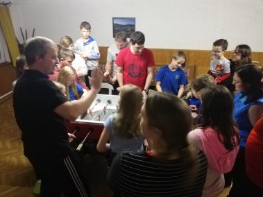 Aber auch neben der Piste ging es wieder lustig zu! Ob auf der bewährten Zockercouch – auf der mittlerweile kaum mehr ein Platz zu bekommen ist – oder beim täglichen Spieleabend hatten alle gemeinsam jede Menge Spaß! Ein besonderes Highlight war neben dem Kickerturnier in diesem Jahr das Überraschungsspiel der Bergfreunde Kid´s für die Erwachsenen. Diese mussten aufgeteilt in vier Gruppen ihre Kreativität und ihr tänzerisches Können unter Beweis stellen. Die Anforderung war eine kurze lustige Choreografie die von den kritischen Augen der Fachjury – unter den Kinder sind einige Gardetänzerinnen – abschließend bewertet wurde.