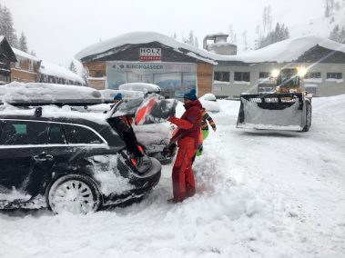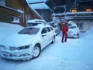 Über Schneemangel konnten sich die Bergfreunde des TSV Velden in diesem Jahr nicht beschweren. Bereits bei der Anreise zu Ihrem viertätigen Renntraining am letzten Donnerstag waren nicht nur die Berge verschneit! Täglich gab es reichlich Neuschnee, so dass bereits das morgendliche Ausschaufeln der Autos zum Spaß wurde!