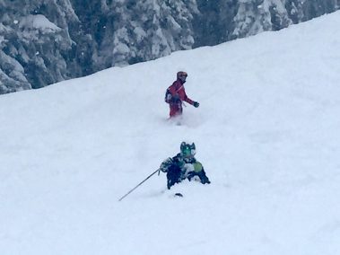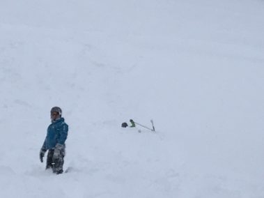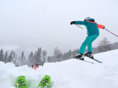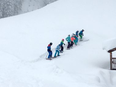 Aufgeteilt in vier Gruppen machte man sich dann ans Training! An Stangentraining war in diesem Jahr aufgrund der riesigen Mengen an Neuschnee nicht zu denken, daher ging es täglich durch feinsten Pulverschnee! Die Kinder und Jugendlichen hatten gemeinsam mit dem fünfköpfigen Trainerteam unter Leitung von Melanie Aberger jede Menge Spaß an Sprüngen, Tiefschneefahrten und Übungen! Auf die hohe Qualifikation Ihrer Trainer sind die Bergfreunde besonders stolz, die sich auch bei der Flexibilität im Übungsprogramm wieder unter Beweis gestellt hat! Bei den Teilnehmern zwischen 5 und 15 Jahren konnte man somit trotz der schwierigen Trainingsbedingungen erneut deutliche Fortschritte in Technik und Fahrsicherheit feststellen.