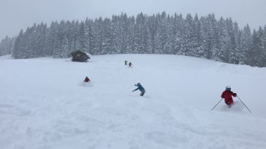 Bergfreunde mit 50 Ski- und Snowboardfahrern zum Renntraining in Filzmoos