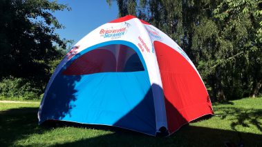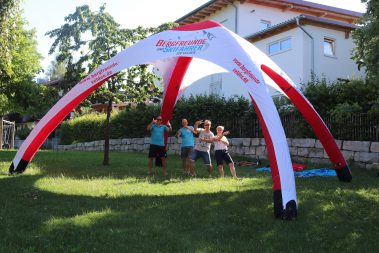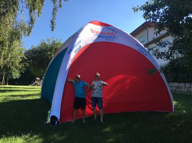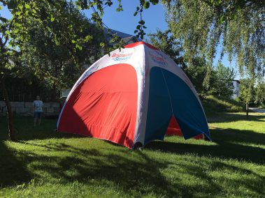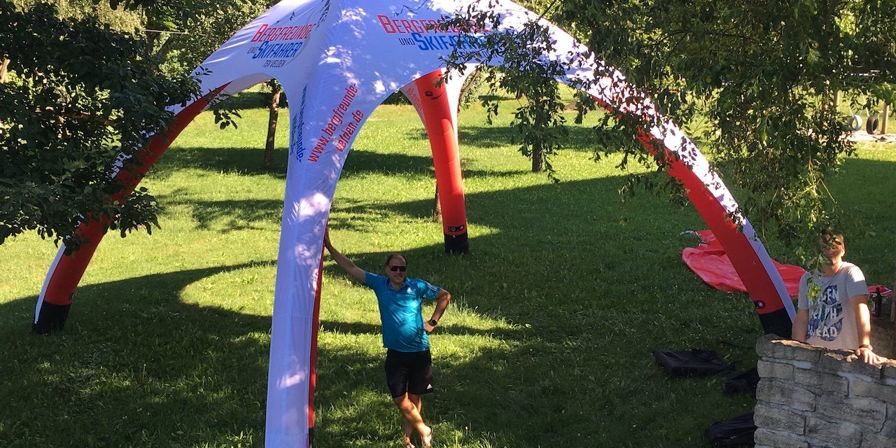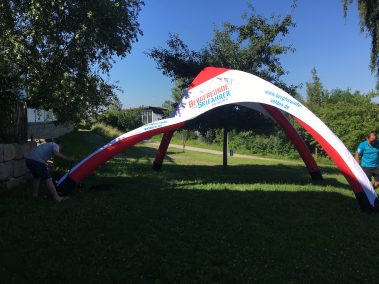 Ein weiteres Highlight ist in diesem Jahr das neu angeschaffte aufblasbare Zelt! Mit 6 x 6 Metern Grundfläche und einer Höhe von über 4 Metern sind wir auf dem Campingplatz mit Sicherheit ein Hingucker!!!