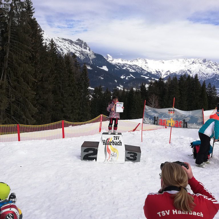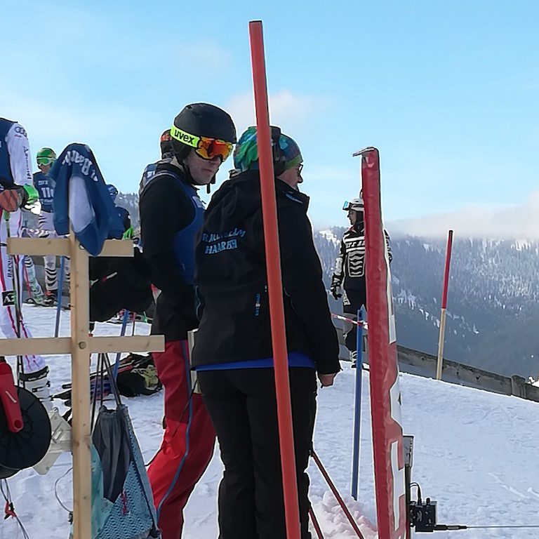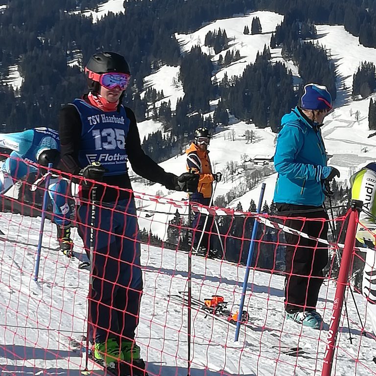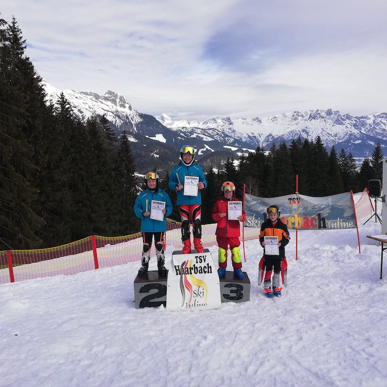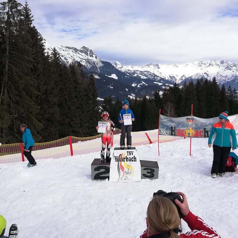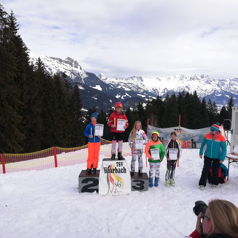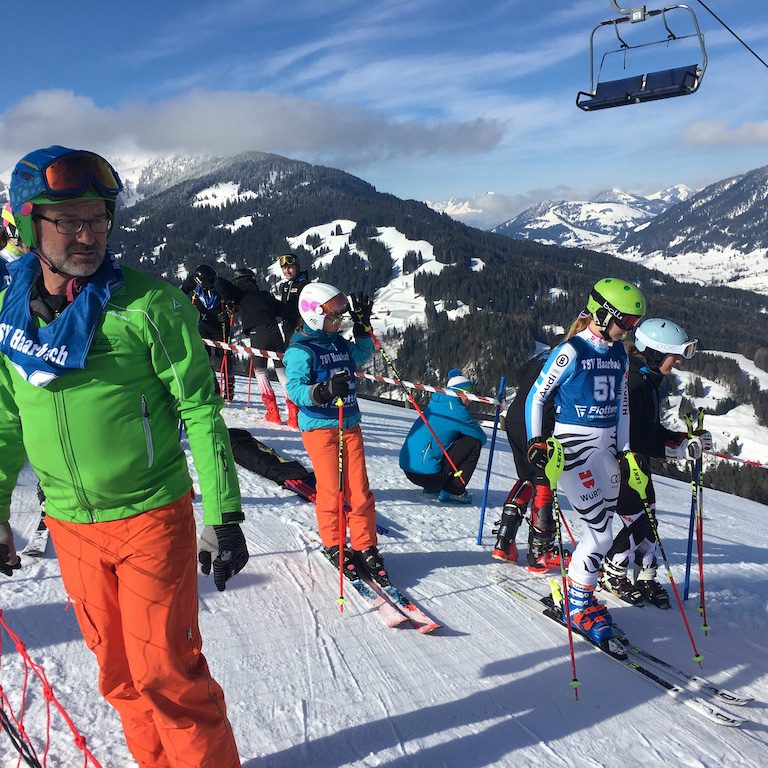 Am Freitag bereitete Dauerregen dem Aufbauteam des TSV Haarbach noch sorgen. Am Samstag – dem Renntag – war die Piste dann steinhart gefroren und in einwandfreiem Zustand, allerdings auch eine Herausforderung für die Rennläufer! Betreut wurde unsere Rennmannschaft diesmal von Passi Schreiber. Bei der Laufbesichtigung und vor dem Start gab er wertvolle Tips! Bei strahlendem Sonnenschein konnte der aus 35 Toren bestehende Riesenslalom pünktlich gestartet werden und ging reibungslos über die Bühne. Der zweite Lauf folgte im Anschluss nach einer Pause, da umgesteckt werden musste! Nach einer weiteren Besichtigung ging es dann zügig wieder weiter!