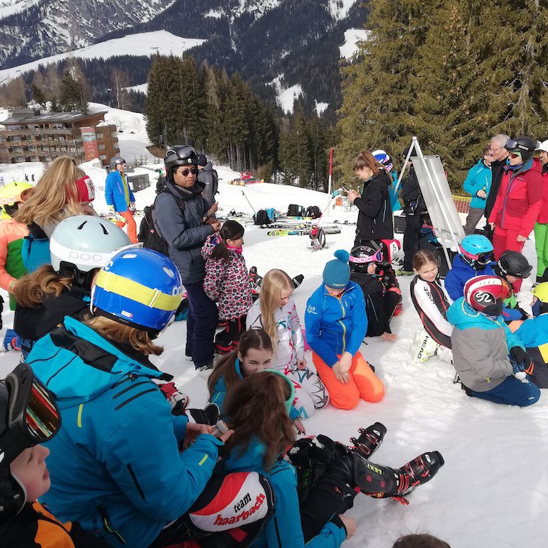 Erneut gingen die Rennläuferinnen und Rennläufer bei super Wetter und tollen Pistenbedingungen an den Start! Um für das Rennen ordentlich gerüstet zu sein, zeigte an diesem Tag Melanie Aberger unserem Nachwuchs bei der Laufbesichtigung einige Tricks. Beim Aufwärmprogramm wurden diese auch gleich in die Tat umgesetzt!