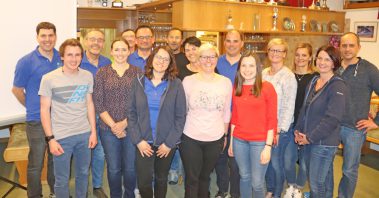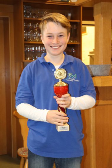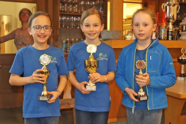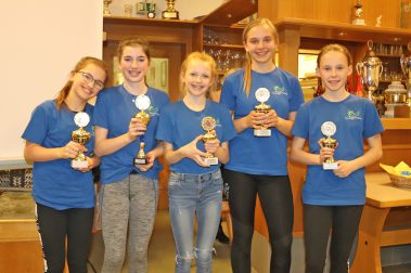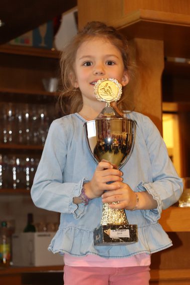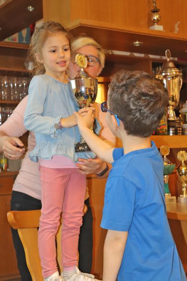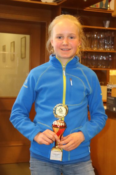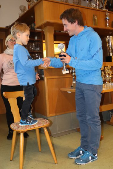 Danach übernahm Marlies Meier die Siegerehrung für die Veldner Meisterschaft. Die wurde heuer in Reit im Winkel ausgetragen und… die alten Meister sind auch die neuen. Melanie Aberger und Pascal Schreiber schreiben sich wieder in die Siegerliste ein. Aber die jungen Wilden sind ihnen auf den Fersen. Pascal übernahm die Ehrung des besten jugendlichen Rennläufers. Der Jugend-Wanderpokal ging dieses Jahr an Victoria Berndl. Sie hatte über die ganze Saison hinweg die meisten Punkte bei den Rennen gesammelt. Mit dem Kassenbericht und der Neuwahl der Abteilungsleitung, bei der es nur geringfügige Veränderungen gab, ging der offizielle Teil zu Ende und die Bergfreunde widmeten sich dem Ratsch und dem Ausblick auf die neue Saison.