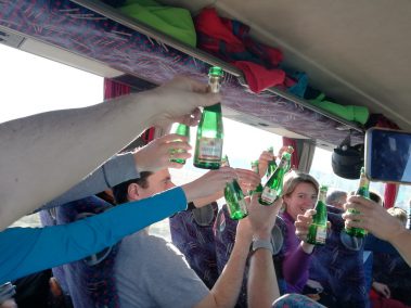 Legendär war auch das Wetter als sich die Bergfreunde morgens mit einem fast vollbesetzten Bus an Tagesausflüglern auf den Weg machten! Ziel war in diesem Jahr das Skiparadies Sudelfeld! Spritzig begann es bereits kurz nach Abfahrt mit dem traditionellen Prosecco-Frühstück!