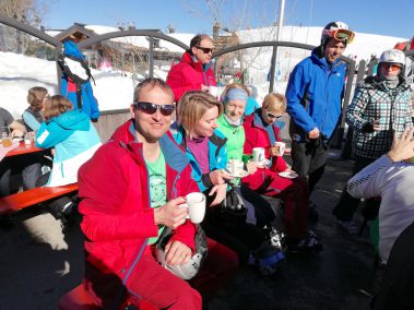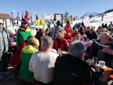 Bei strahlendem Sonnenschein hatte man nicht nur auf der Piste jede Menge Spaß! So trafen sich viele mittags auf der Waller Alm zu einem gemütlichen Mittagessen oder genossen beim späteren Einkehrschwung einen Kaffee auf der Sonnenterrasse der Speckalm!