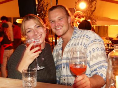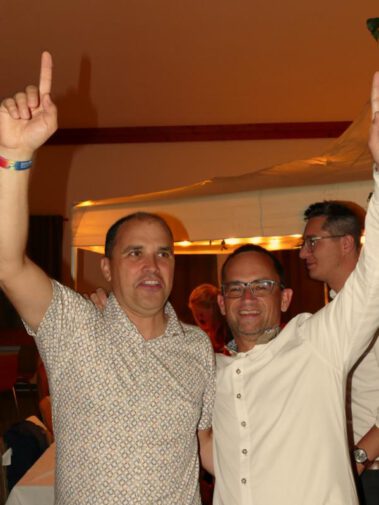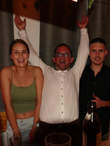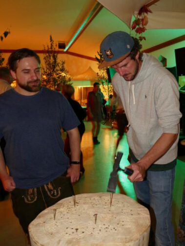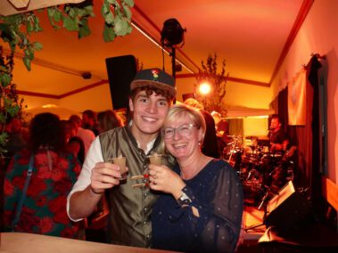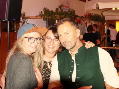 A vom Wetterumschwung ham se de Bergfreind ned aufhoitn lassn. In da Viehwoad, beim TSV, war wieder moi danzn und dringa und guad essn ogsagt. Wie im letzten Jahr san de Weine aus Taufkircha, von da Kratzer Ingrid, ogliefert worn. Und soweit ma sang kon war für alle a flüssigs Gaumenschmankerl dabei. Dazua hod no a Band gspuid, de “Blue Rockit”. Zum zamdanzn und zum Schluss a zum abrocken. De fleißgen Mädels von de Bergfreind ham was zum essn hergricht. Schmankerlbrettl, Dreierlei Dipp und Antipasti san auf da Speisekartn gstandn. Ois “Speschl” had da Kollmer Flo wieda a extra “Bergfreind Salami” gmacht, sauguad. Zu späterer Stund san no de Fuaßballer von da AH kemma, gwunna hams, den Erdinger-Weißbier-Cup. Und somit hams an Grund kappt zum feiern, bis…. naja, Schwamm drüber. Schee wars, mia gfrein uns aufs nächste Weinfest 2024.