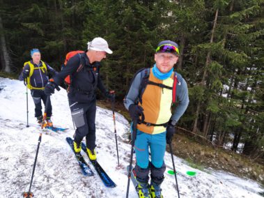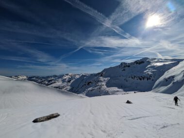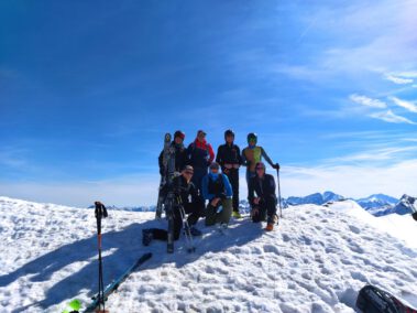 Die 1000 Meter Höhenunterschied waren nicht die Herausforderung dieser Skitour. Jedoch der knapp 13 Kilometer lange Hin- und Rückweg sowie die hohen Temperaturen gegen Mittag brachte die Gruppe arg ins Schwitzen. Nach dreieinhalb Stunden Anstieg freute man sich, völlig einsam und allein, bei herrlichem Panorama, auf dem Gipfel zu stehen. Die anschließende Abfahrt zum Ammerer Hof zog sich etwas länger als erwartet, da doch die Schneedecke, ob der hohen Temperaturen, schon arg weich wurde und unter den Skiern ordentlich saugte. Die Strapazen waren aber rasch vergessen als man auf der Sonnenterasse diverse Kaltgetränke, Kaffee und Kuchen genoss.