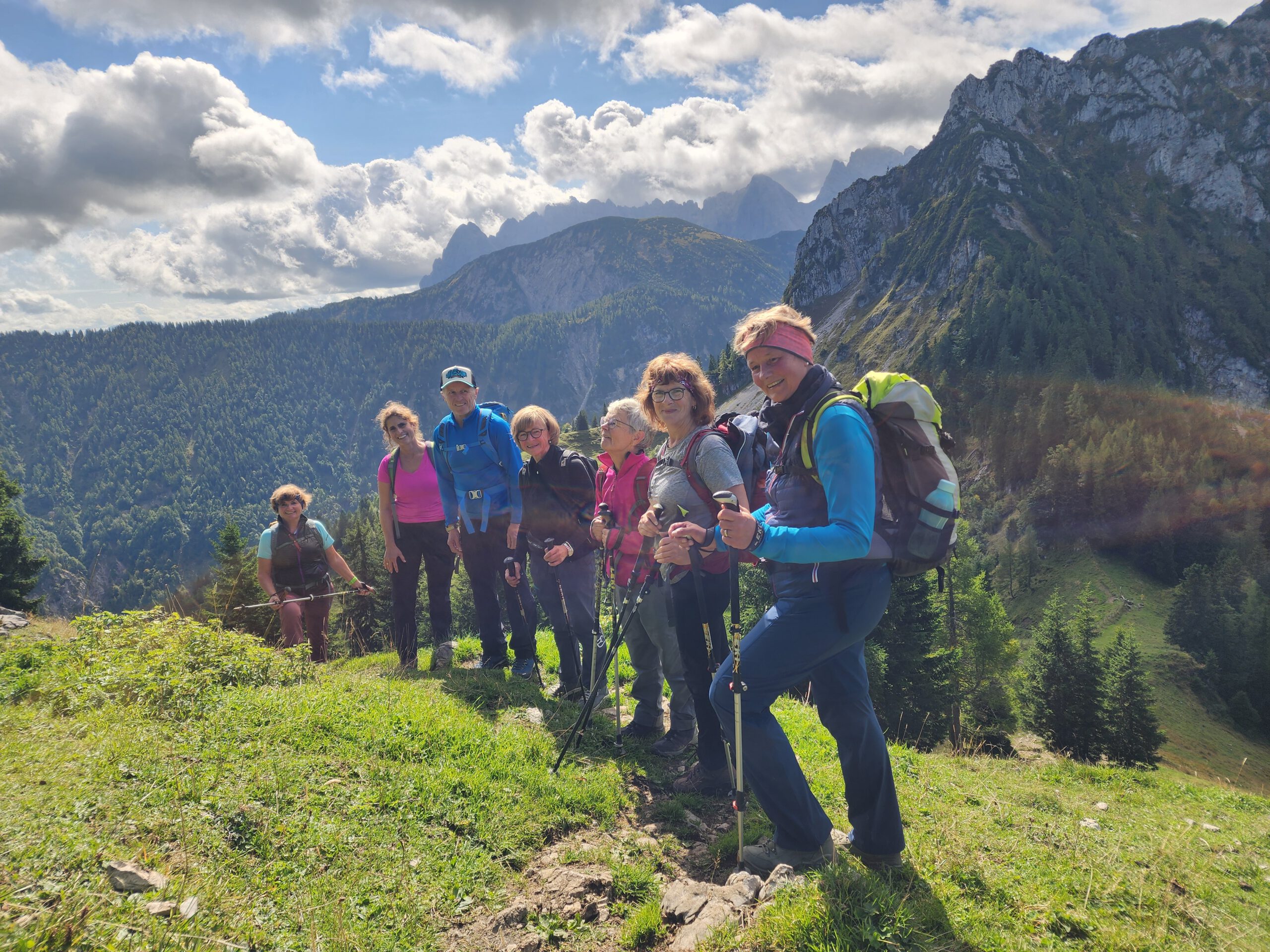 Sechs Wanderfreundinnen und zwei Wanderfreunde unternahmen kürzlich eine Wanderung zu einem der schönsten Aussichtsberge im Kaiserwinkel, dem 1603 Meter hohen Heuberg. Ein überaus abwechslungsreicher und dennoch nie schwieriger Anstieg startet vom Parkplatz Lippenalm, südlich des Walchsees.